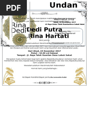 Desain Dan Percetakan Undangan Pernikahan Termurah Di Solo Contoh Undangan Pernikahan Model Sim Hcgd 04 from 1.bp.blogspot.com Undangan pernikahan islami merupakan salah satu jenis undangan pernikahan yang desainnya lebih mengedepankan unsur tentang islam. Baik itu dari segi kombinasi warna dan motif yang ada di desain undangan anda. Sebuah peristiwa yang diharapkan terjadi sekali seumur hidup. 0896 7465 4330 wa undangan khitanan contoh undangan khitan pdf sumber: Bersama ini kami mengharapkan kehadiran bapak/ibu/saudara/i untuk menghadiri acara syukuran atas akan dilangsungkannya pernikahan putri kami : Dalam mendesain undangan ternyata tidak melulu soal bentuknya yang unik. Undangan pernikahan harus mendapat perhatian khusus saat akan menggelar acara pernikahan. Format undangan pernikahan islam sebenarnya sudah banyak yang diberikan dan dapat dipelajari di internet namun kadang masih ada saja yang kesulitan mencari contohnya.